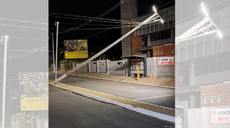 Poste caiu na Avenida Tiradentes, em Marília (SP), na madrugada desta segunda-feira (6).