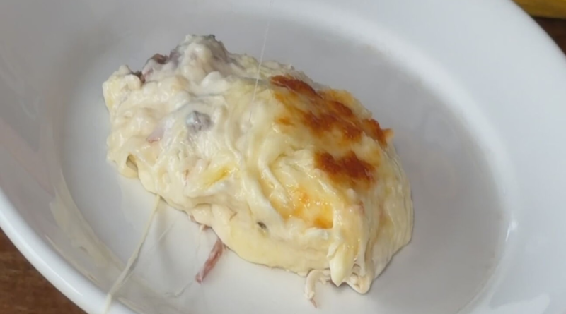 Leve ao forno pré-aquecido a 180°C por aproximadamente 15 minutos ou até que o queijo doure e comece a borbulhar nas bordas.
